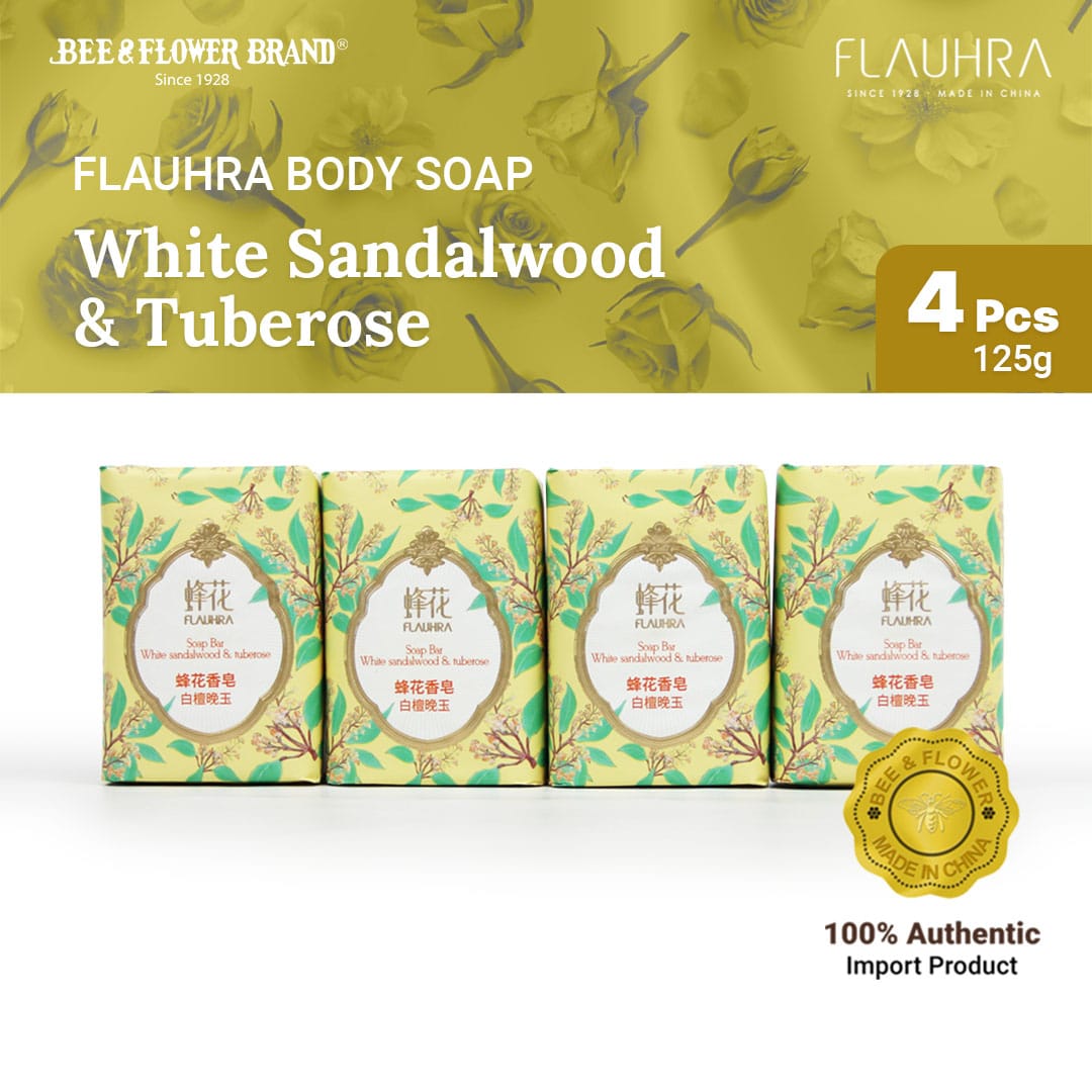 Flauhra Import Bar Soap White Sandalwood and Tuberose 125 gr (4 pcs) – Varian : batang – Sudah BPOM – Produk ori impor 100% dari China.